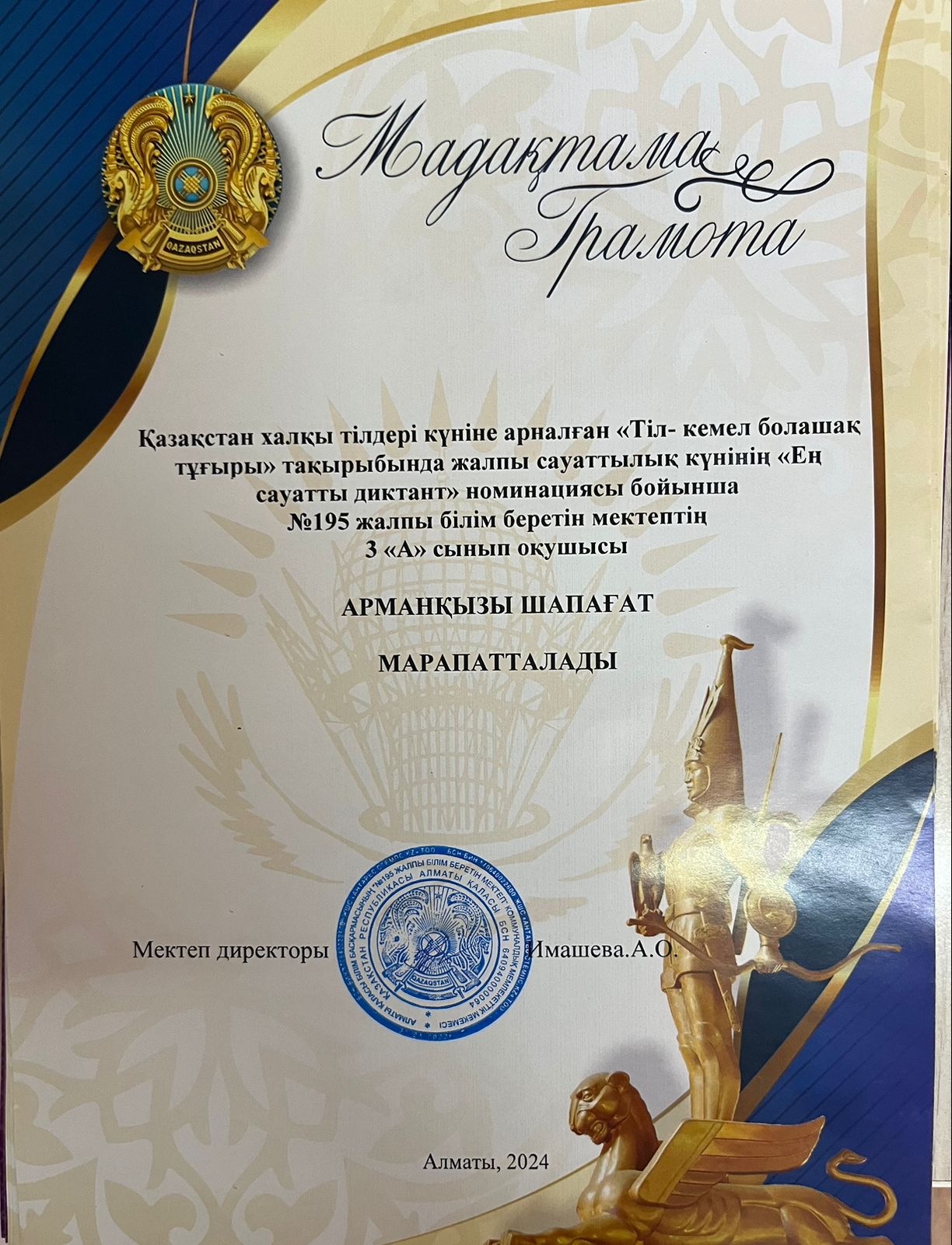 13.09.2024 жылы 2-3 сынып оқушылар аралығында «Жалпы сауаттылық күні» тақырыбында ең үздік диктант жазып ұсыну.
