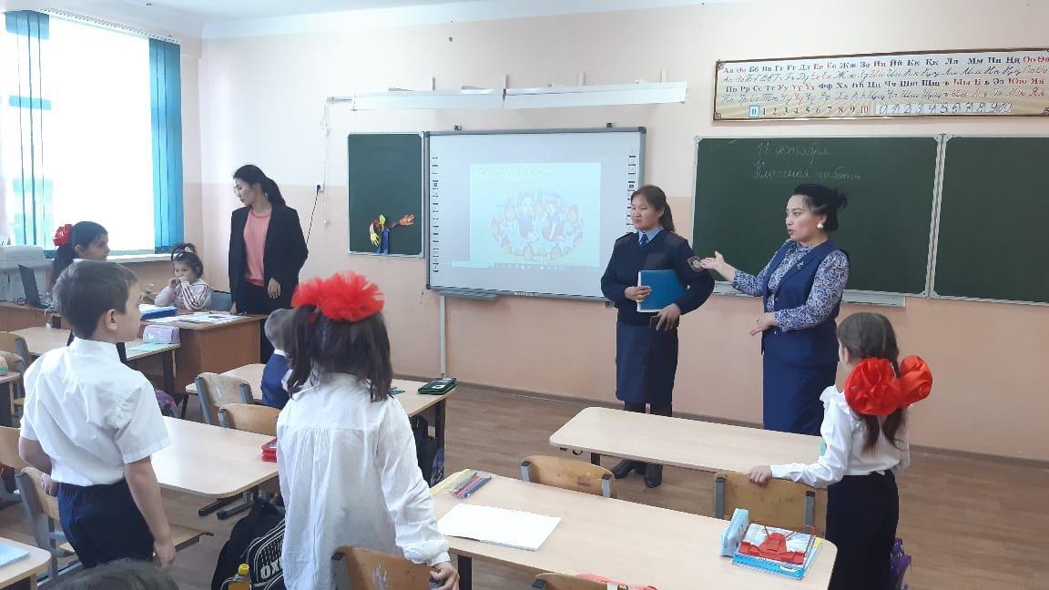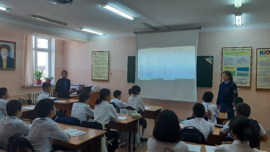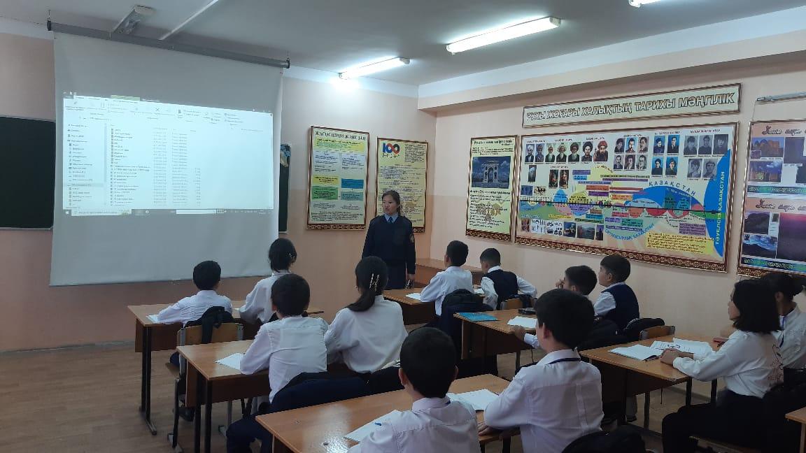 В ходе беседы говорили об отличии административной и уголовной ответственности, соблюдении правил дорожного движения и мер личной безопасности, вредном воздействии запрещенных психотропных веществ и вовлечении подростков в незаконный оборот наркотиков. Майор полиции А.Бакытбекова рассказала о грозящей подросткам уголовной и административной ответственности за совершение правонарушений и преступлений. И напомнила, что в вечернее и ночное время после 23.00 несовершеннолетние не должны находиться без сопровождения законных представителей на улице и в общественных местах. В ходе беседы инспектор по делам несовершеннолетних майор полиции Утегенова Д. предостерегла ребят от прогулов и нарушения установленных в школе правил поведения. Ведь постановка на учет в ОДН может сильно осложнить им жизнь, когда придет пора поступать в ВУЗ, искать работу, получать водительское удостоверение. Также они обсудили со школьникам тему профилактики мошенничеств и привели примеры основных схем злоумышленников.