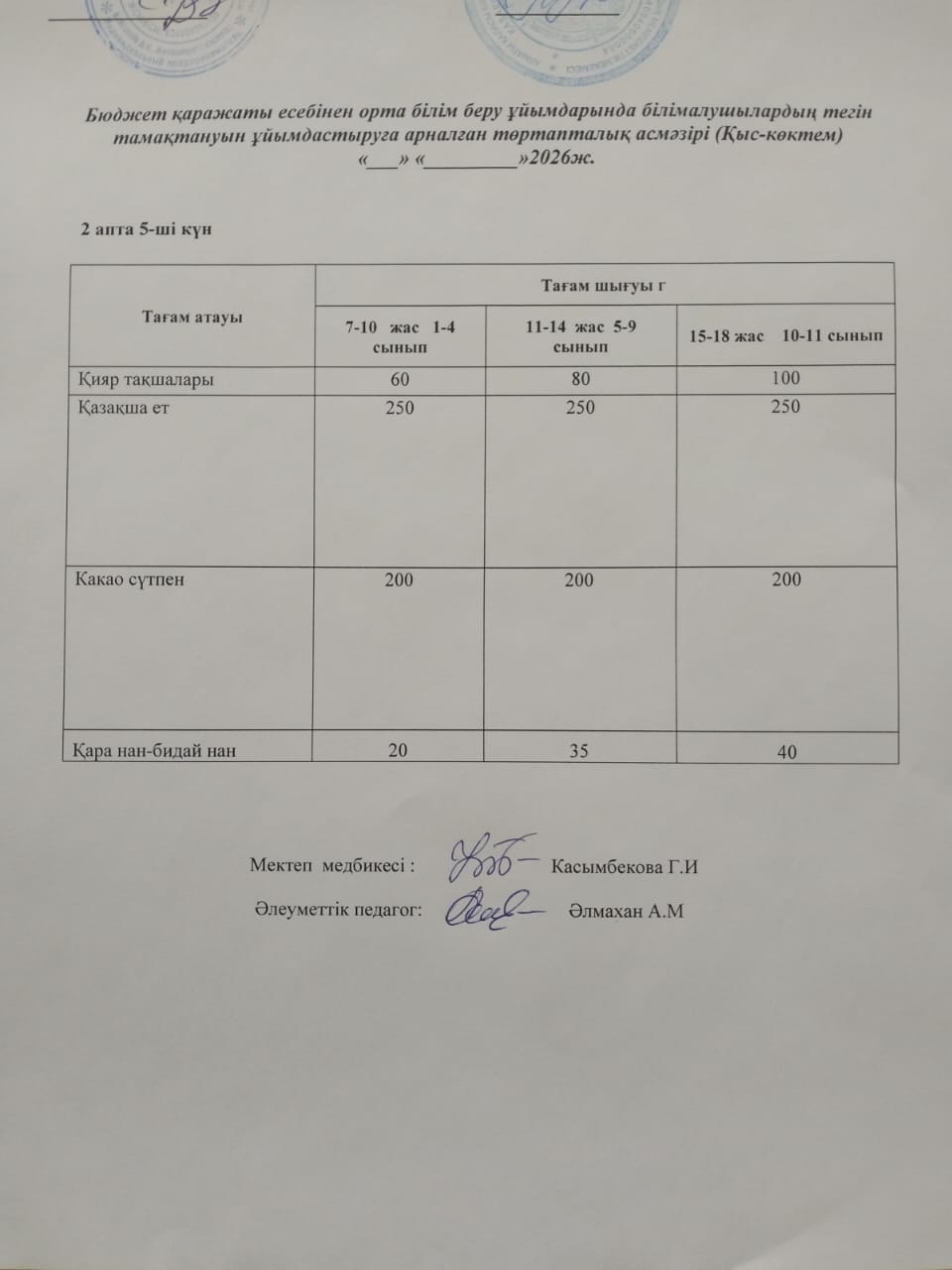 Қабылдау бөлімі :