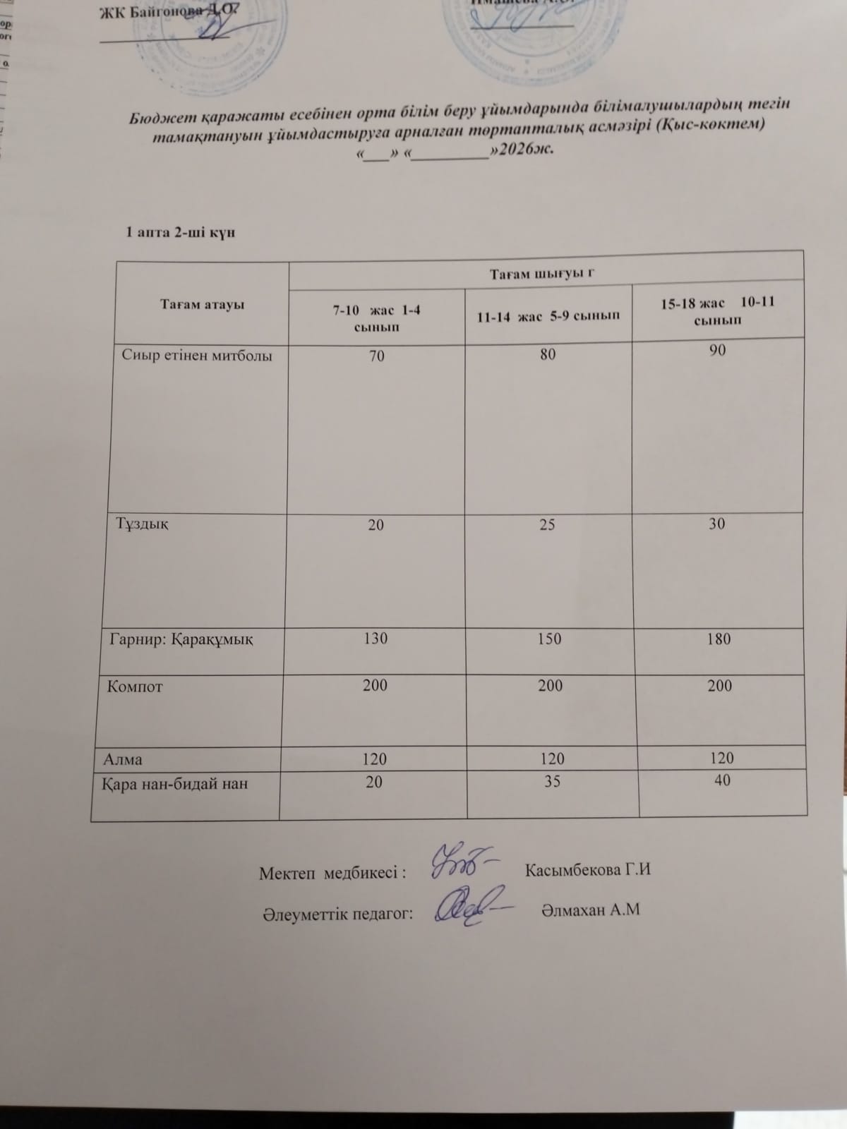 Қабылдау бөлімі :
