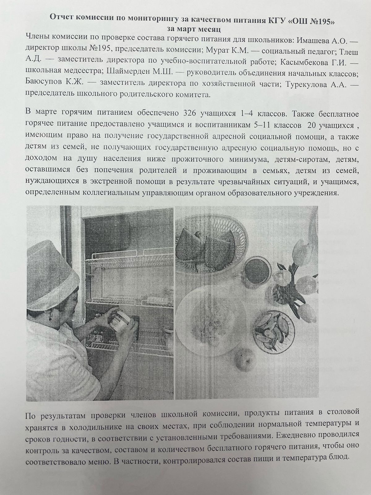» » » Тамақтану сапасының наурыз айына есебі/ Отчет комиссии по мониторингу за март месяц