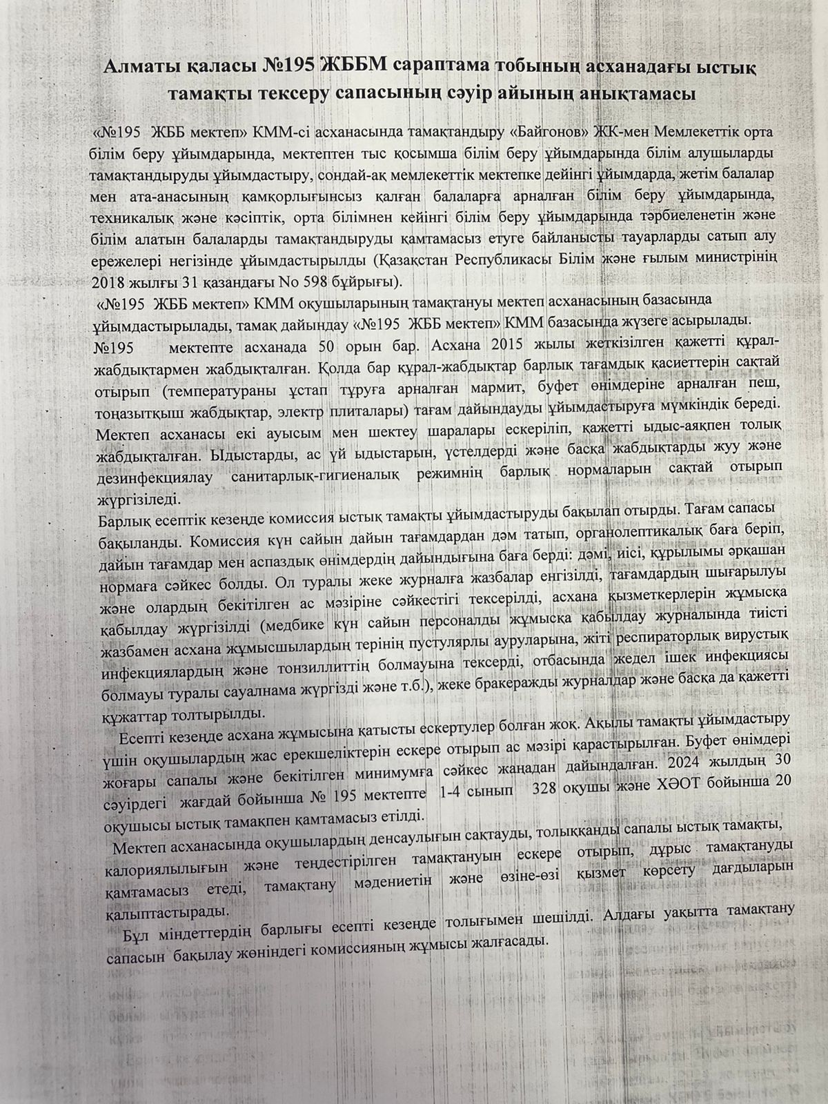 » » » Тамақтану сапасының сәуір айына есебі/ Отчет комиссии по мониторингу за апрель месяц