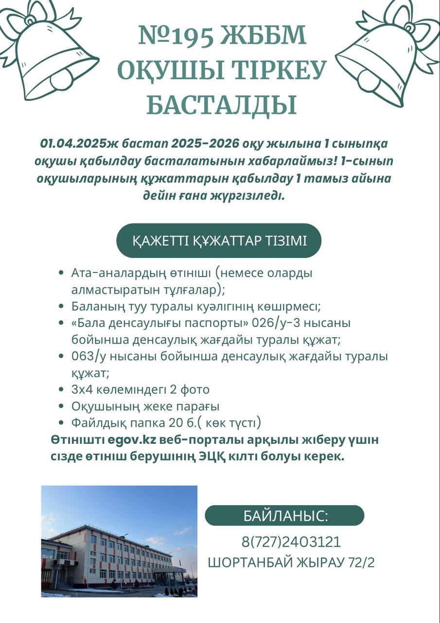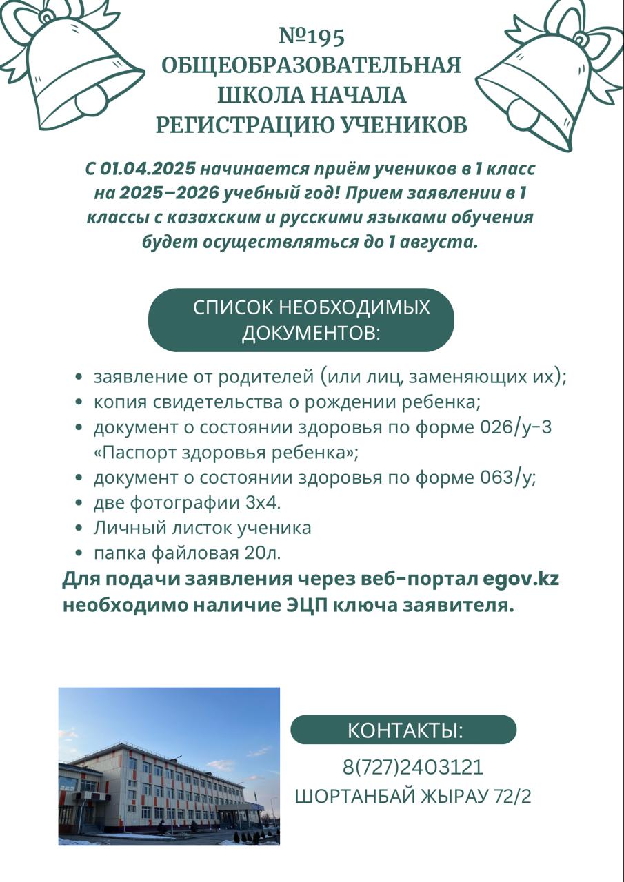 » » №195 ЖББМ оқушы тіркеу басталды